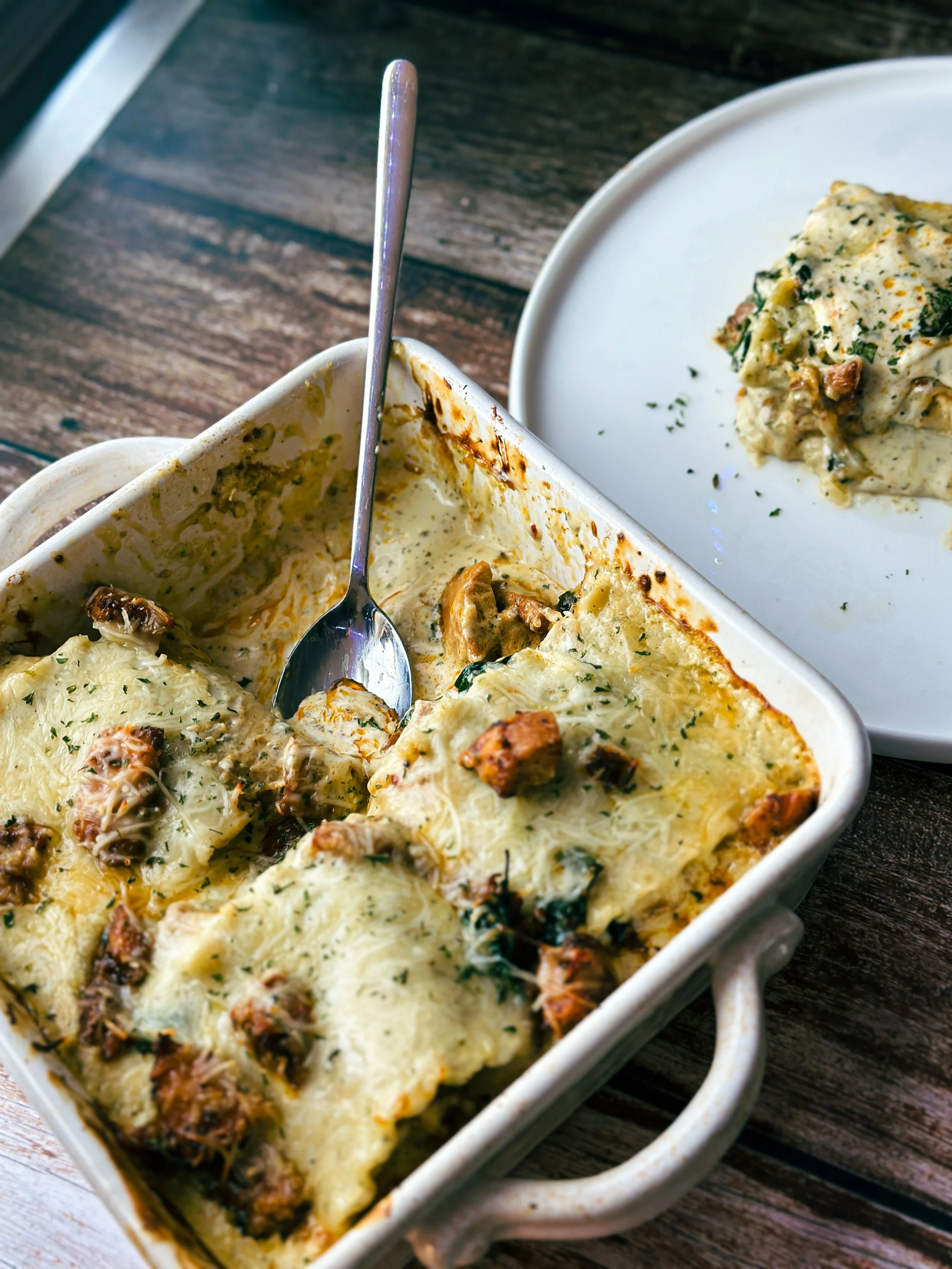 Alfredo Lasagna Rolls with Basil Chicken